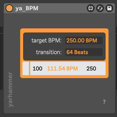 This device looks at the clip names in the track it is sitting in. If it detects @ and two numbers, it will set the BPM of Live accordingly. An optional second number sets the number of beats to transition to the target BPM.